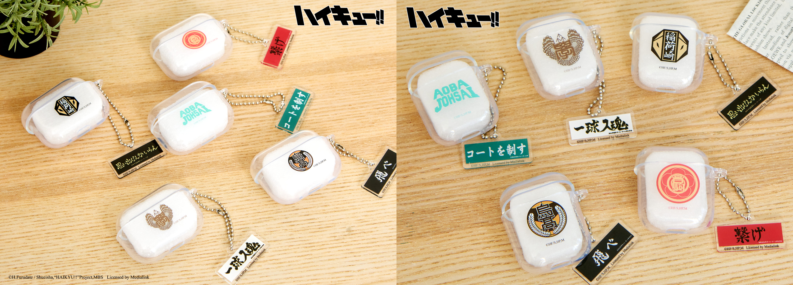 讓排球少年幫你把耳機收好,五款「AirPods保護軟套」,除了有校徽圖案,旁邊還加上相硬的學校應援詞,快把最喜歡的隊買回去吧!手機也讓排球少年來保管,六款「夾片吊繩組」帶有「排球少年!!」日文字樣的短繩,配上學校Q版吉祥物吊飾,讓烏野烏鴉和音駒貓咪來守護你的手機吧!