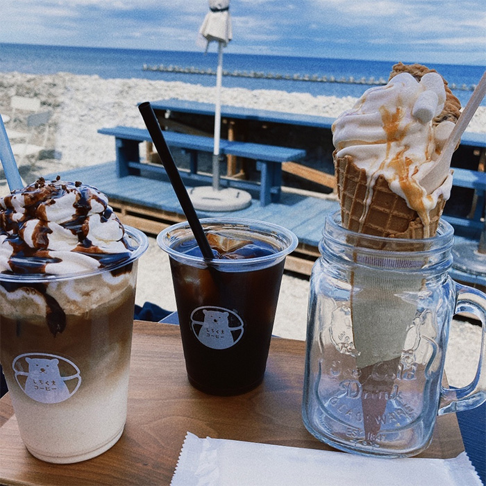 第一家要介紹的是位於北海道小樽的「shirokuma coffee」,店名以「白熊/北極熊」來命名,也能從商家的LOGO上看到可愛的北極熊,看起來相當療癒。咖啡廳的室內與室外皆有設置座位區,坐在室外能夠一邊吹著海風,一邊享受海景與美食,度過愜意的時光;而坐在室內區則能夠透過窗戶望向海邊,從室內透過窗戶看出去的海景也是別有一番風情。