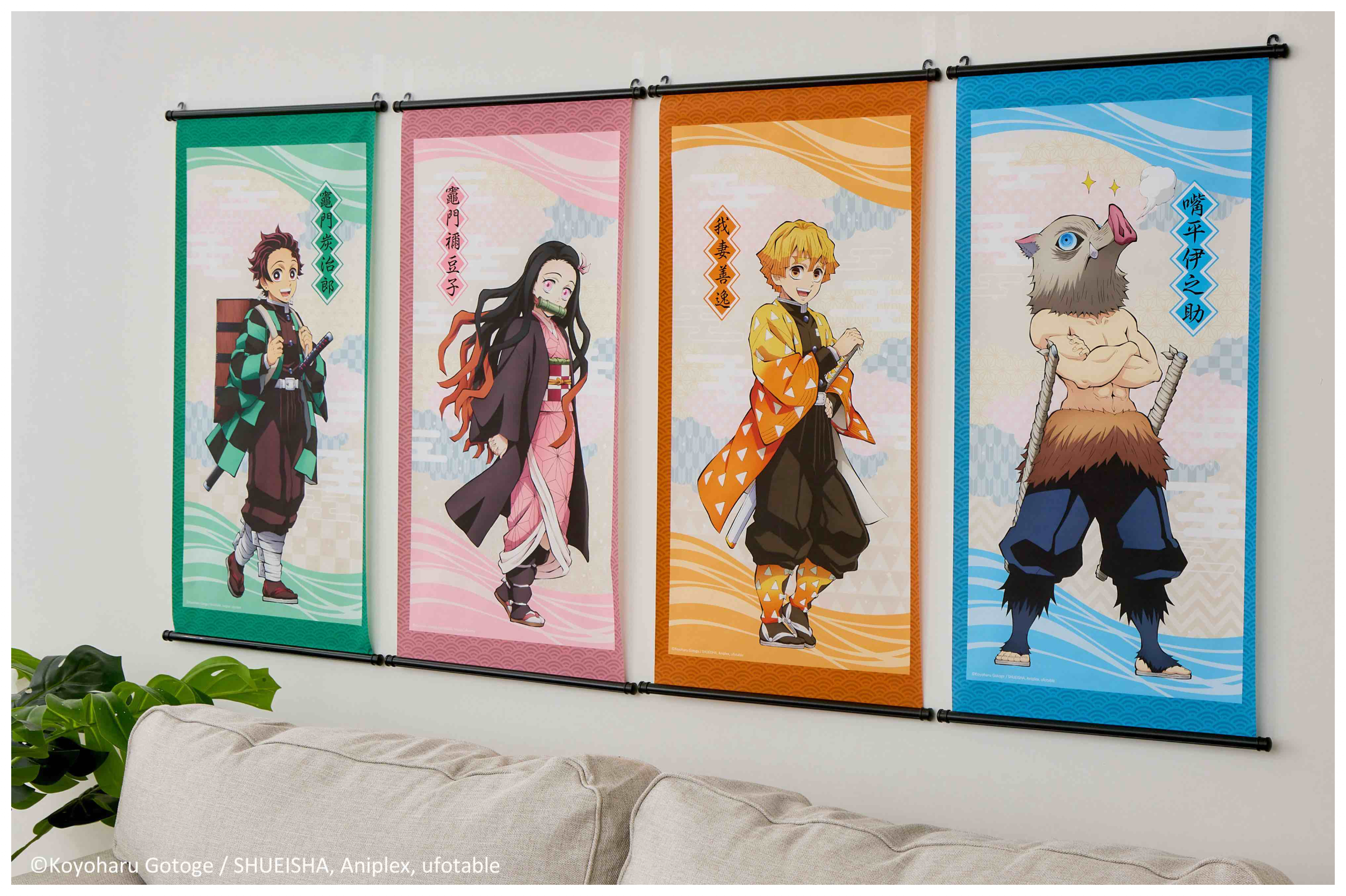 背著木箱的炭治郎、咬著竹筒的禰豆子、元氣滿滿的善逸及充滿自信的伊之助,四大主角「掛軸」好看到讓人流眼淚,另外也有四大主角「滑鼠墊」打電腦也要很鬼滅!在家喝茶一定要用「木杯墊」鬼殺隊、炭治郎、禰豆子、伊之助五種款式日系有質感,「無框畫」有遊郭篇及刀匠篇的主視覺,還有炭治郎、禰豆子、天元、蜜璃、無一郎個人無框畫,五人都帥出新高度!