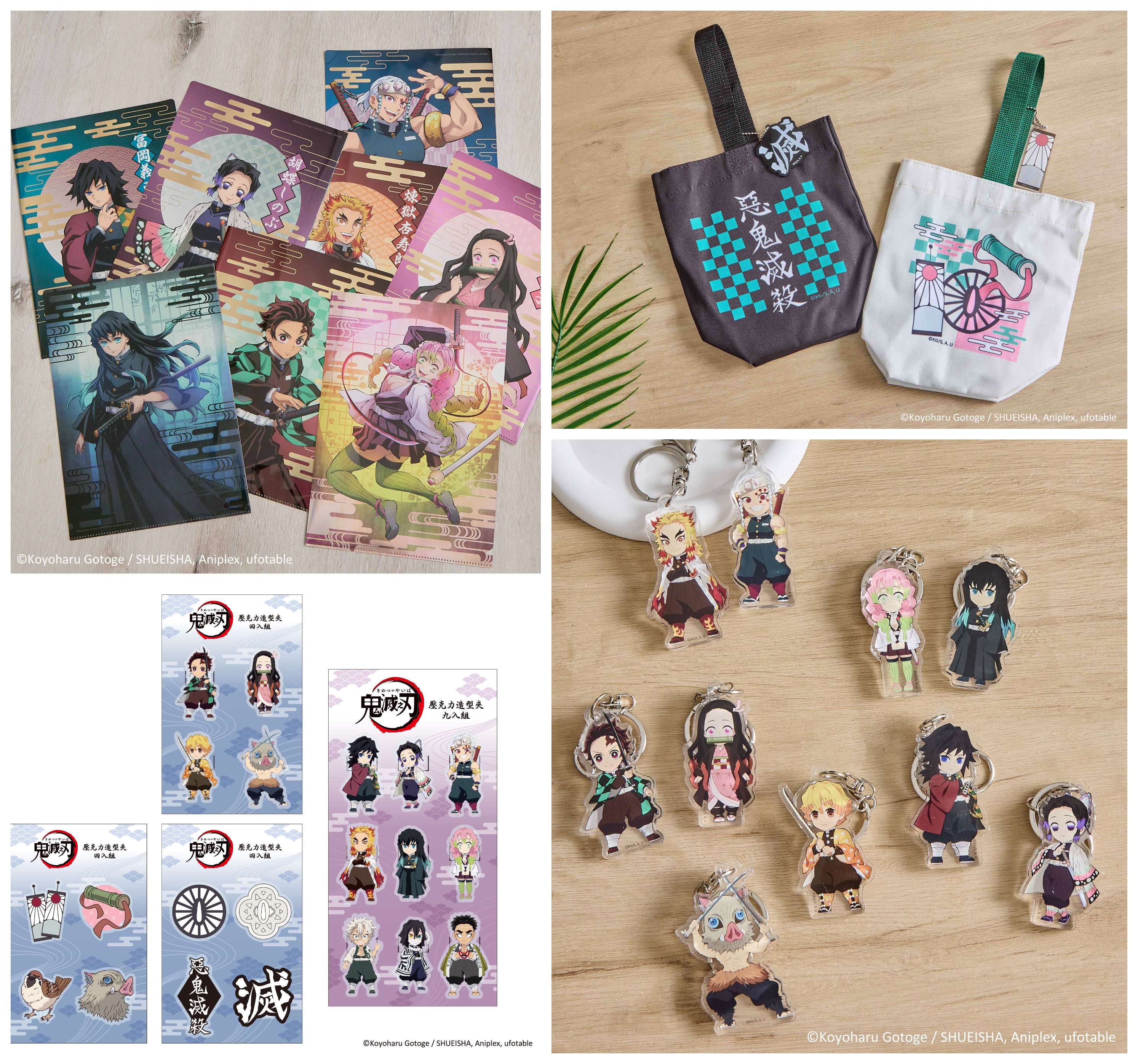 文件整理必備的「資料夾」,有水柱&蟲柱、炎柱&音柱、戀柱&霞柱及竈門兄妹款,每面都是熱門角色超級愛!Q版九柱「造型夾」收文件就交給鬼殺隊最強的九位!竈門兄妹「飲料提袋」禰豆子竹筒圖樣加上炭治郎的耳環造型吊飾怎麼能不愛?還有黑色的鬼殺隊款一樣好看!
