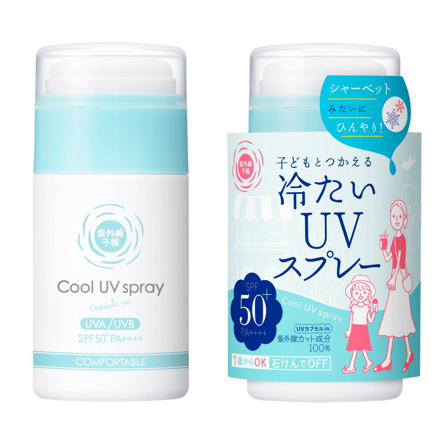 紫外線予報這款具有「冰涼」感的「紫外線預報 涼感防曬噴霧(紫外線予報 冷たいUVスプレーP)」。這款防曬噴霧如同雪酪般的冰涼質地,在炎熱的夏天也能愉快地進行UV防護。不僅是單手即可輕鬆塗抹的「直接塗抹」型產品,即使多次重複使用也不會產生泛白,並能保持清爽的效果,非常適合外出時隨時補塗。而且這款產品1歲以上的孩童就可以使用,用肥皂即可清潔乾淨。