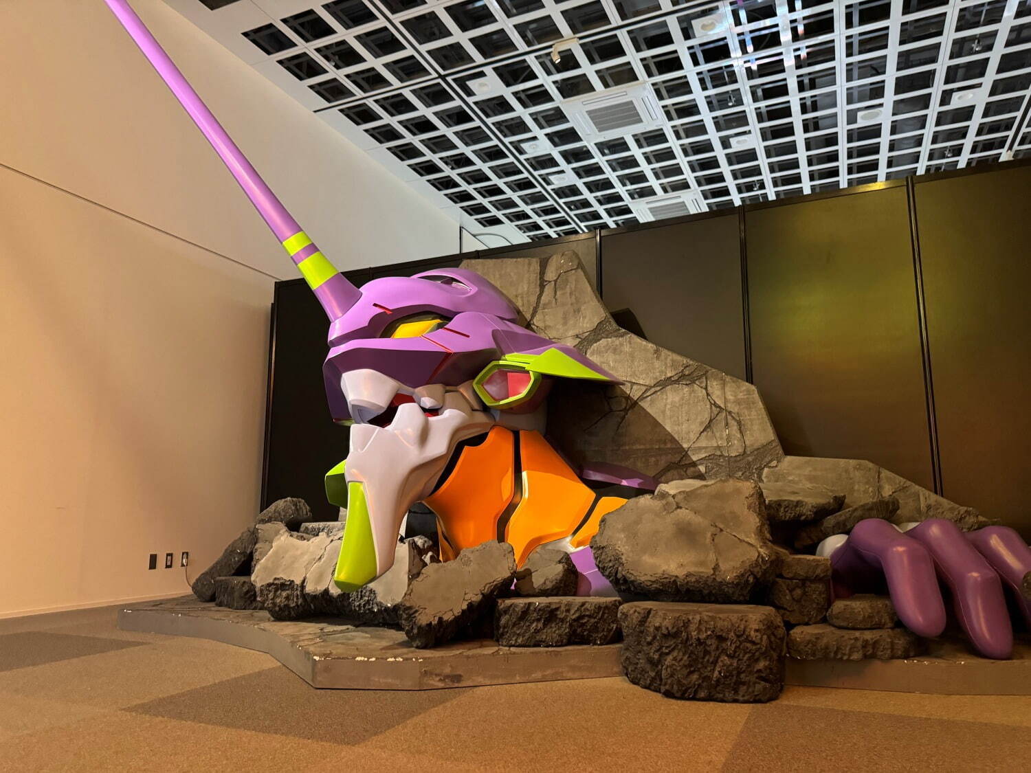 而在先前青森會場舉辦的《新世紀福音戰士》大博覽會中,我們甚至能夠看到超級大的初號機頭像,讓入場的觀眾馬上就能感受到初號機帶來的震撼。