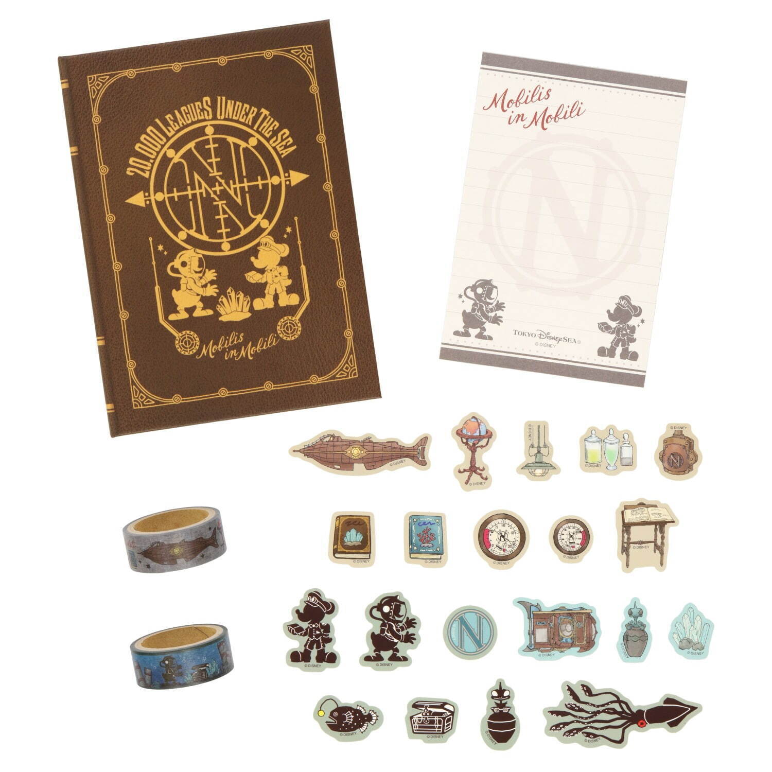 「海底兩萬英里」這個設施的主題,就是搭乘著小型的潛水艇進行探索海底的任務。而這次的新周邊也是以探索海底的米奇以及唐老鴨為主軸,可以從設計中看出他們似乎是在海底找到了某種大發現而雀躍。