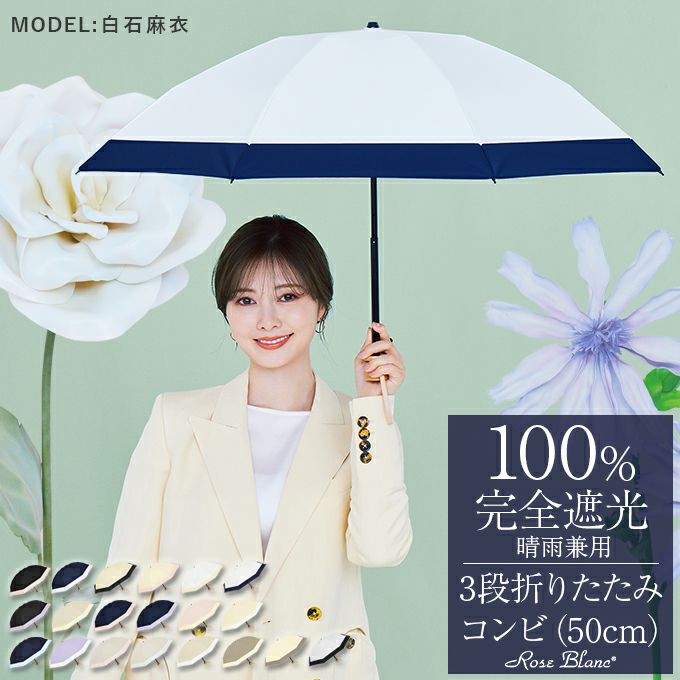 這款「三折遮陽傘」是芦屋Rose Blanc遮陽傘系列中最為輕巧的一款,折疊後的尺寸約為24公分,能夠輕鬆放入手提包中攜帶!此外,日傘內側設計為黑色,以吸收來自地面的反射光。「雙色(コンビ)」系列以雙色設計為特色,擁有多達21種顏色的選擇,可以根據當天風格搭配不同的顏色,讓遮陽傘成為時尚單品之一!