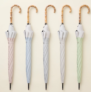 「雙色moku(コンビmoku)」。這款日傘使用了混色紗線,呈現出如棉質般的清爽質感,溫柔的淺色調讓人感覺格外清新怡人,總共有5種顏色可供選擇!此外,傘柄部分也可以根據個人喜好挑選竹製手柄或透明手柄。
