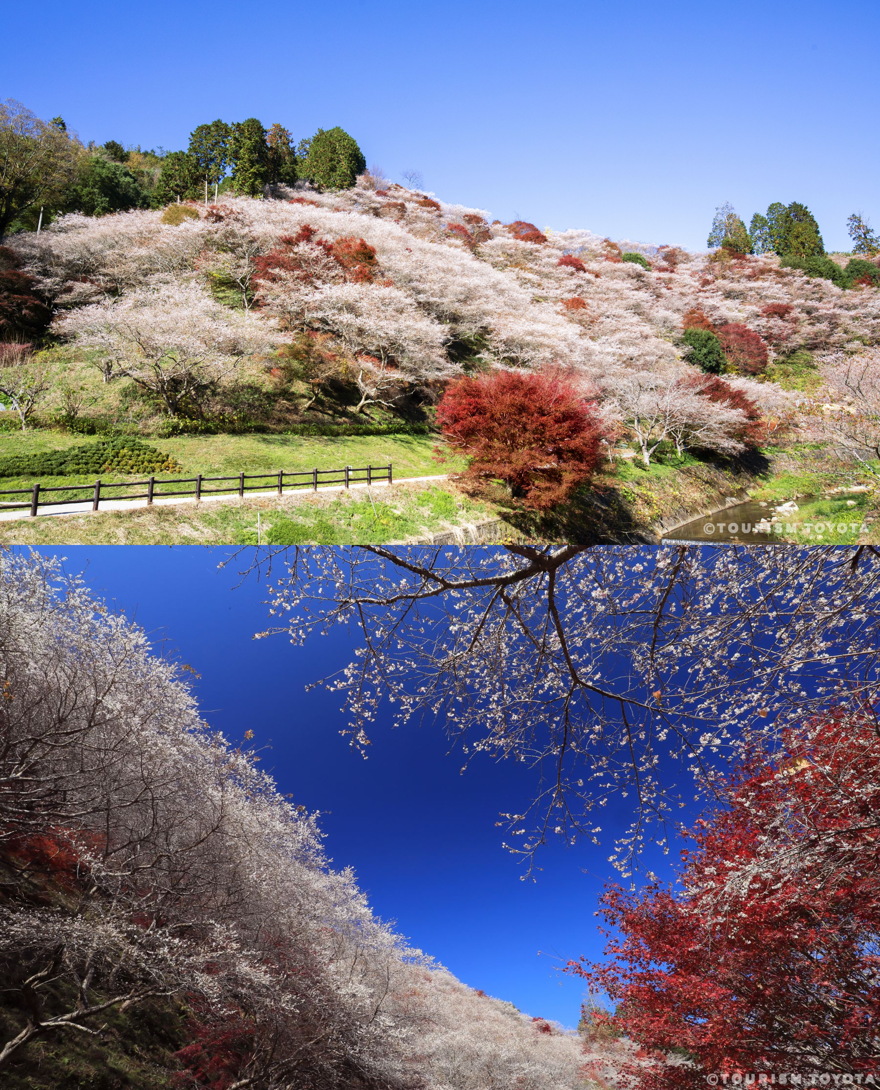 四季櫻與一般櫻花不同,是一年春秋開兩次的罕見櫻花。特別是秋天開花與紅葉時期重疊,可以欣賞到日本也很少見的「櫻花與紅葉爭豔的美景」。