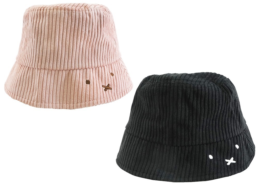 而帽子的部分,除了貝雷帽以外,還有以條絨造型為主的可愛米飛兔漁夫帽,上頭米飛兔的經典可愛表情是不是讓人覺得萌翻天了呢。