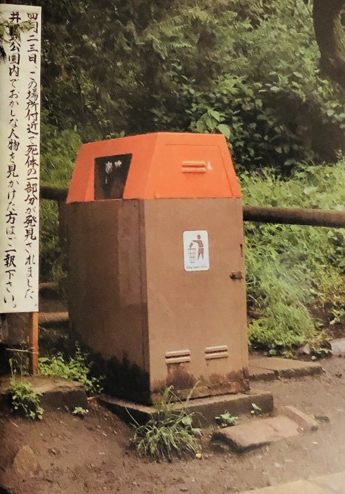 井の頭公園のゴミ箱や周辺から、20cm角に切断された計27個の部分遺体が発見された事件。