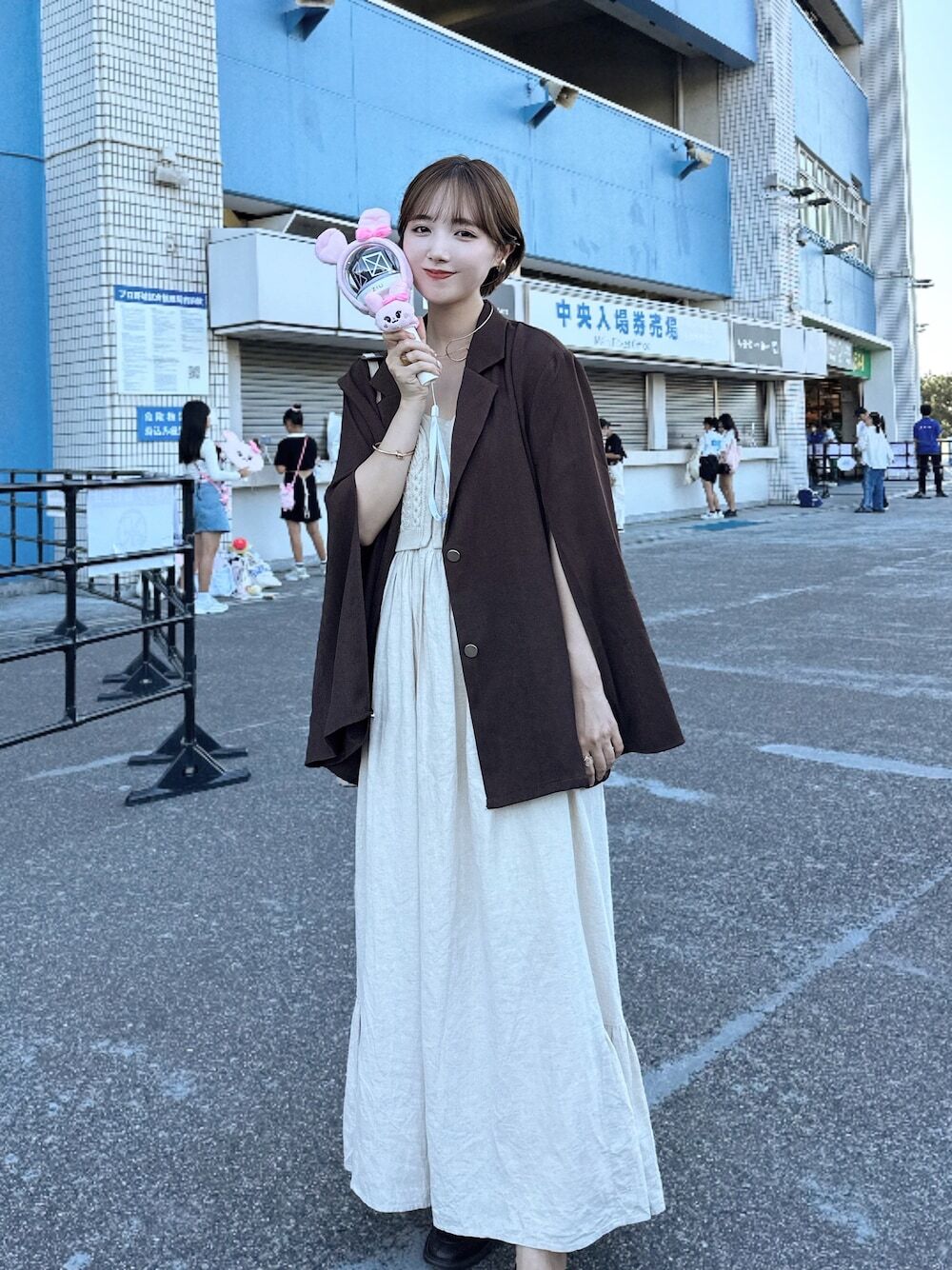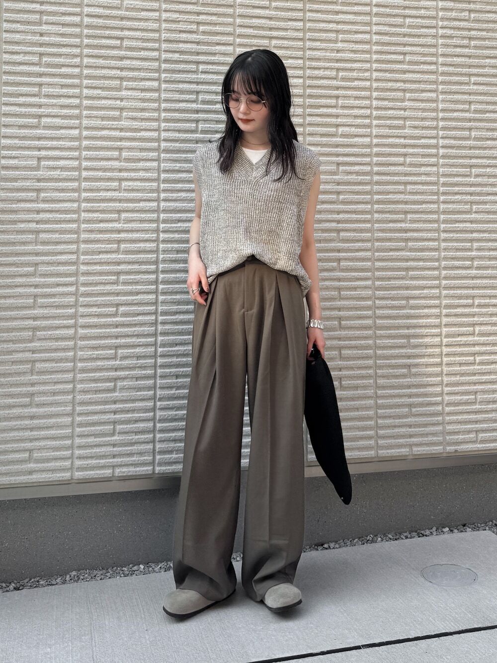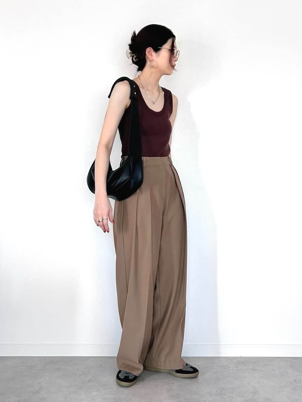棕色與卡其色,一直以來都是秋冬不可或缺的必備色調,洗鍊感的卡其色,能傳達一股率性自然的氛圍,選搭黑色背心混合,看起來簡約又個性,而內搭一件透膚棕色罩衫,瞬間轉換成好感度滿分的日系 Look 。
