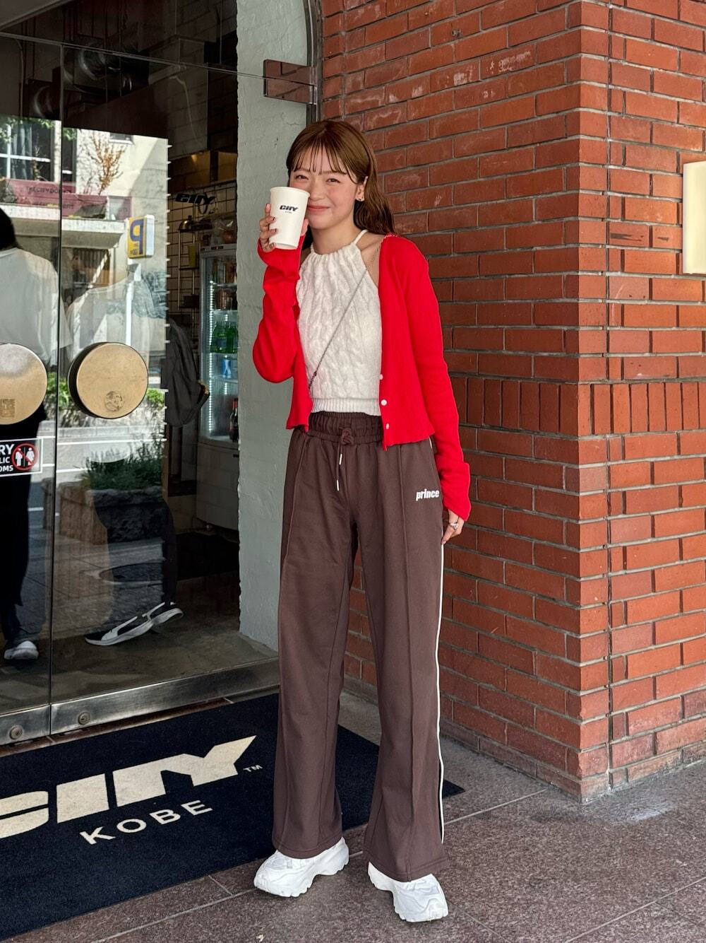 除了運用大地色疊搭表現造型之外,其實也可以利用無彩度單品混搭,例如灰色與咖啡的配色方式,能輕鬆連結高級度滿滿的質感印象,再運用溫暖感的針織面料,使整體散發一股秋季魅力,隨性踏上球鞋就很加分。