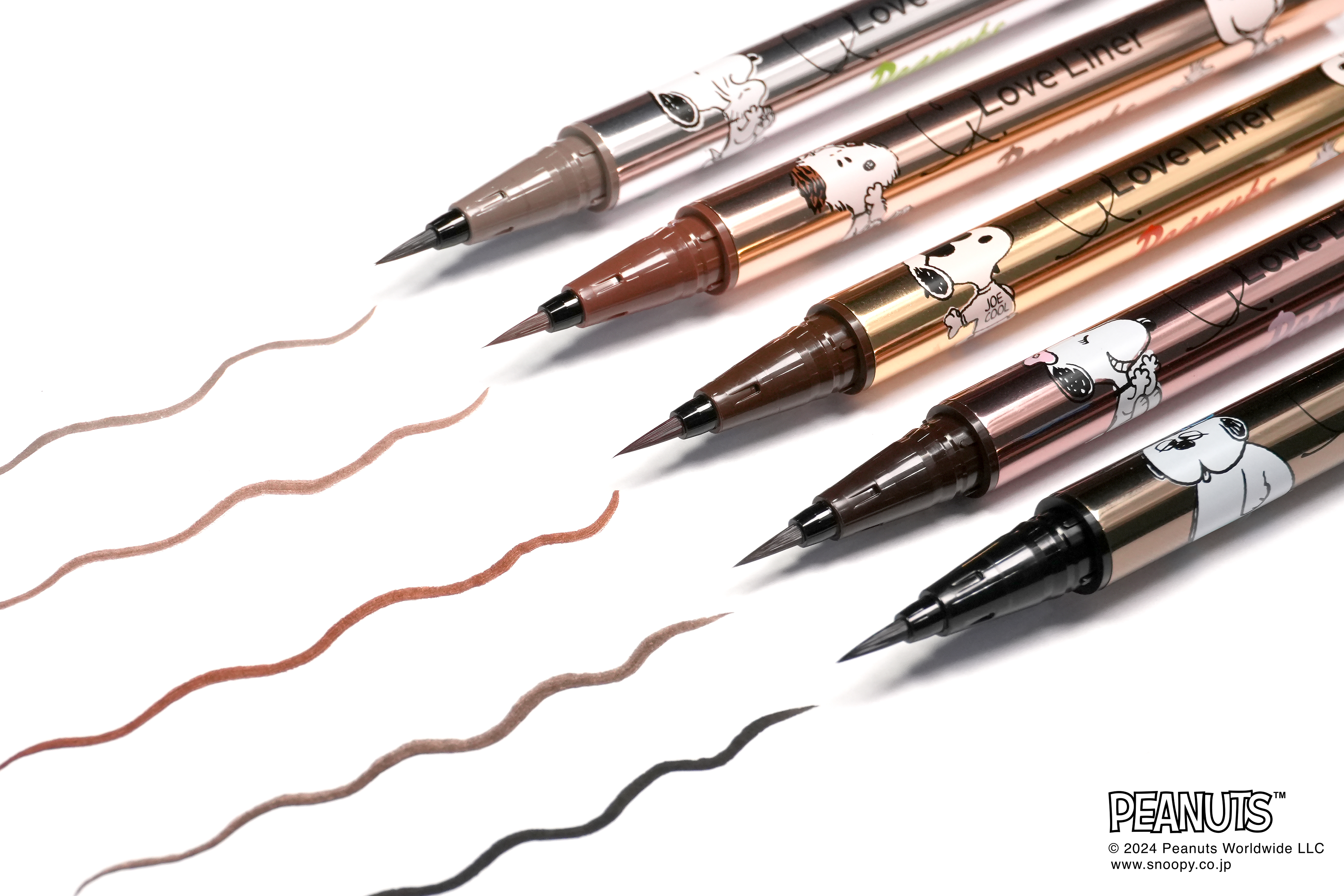 Love Liner史努比超防水極細眼線液筆一共五種顏色供選擇,從漆黑、深棕至淺棕等色系,喜愛不同妝感的民眾皆可找到最適產品,尤其亞洲人的瞳孔顏色從漆黑至褐色不一,根據個人的眼型、瞳孔色系、妝容風格及化妝的場合,皆可輕鬆挑選到適合的顏色!
