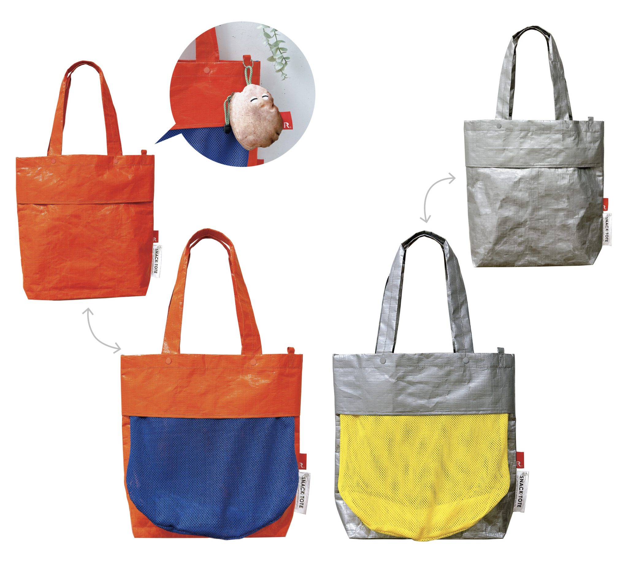 「ROOTOTE」是日本相當知名的托特包品牌,旗下的包包造型與功能性兼具,作為日常使用的包款而受到許多人的愛戴。而這次與Calbee聯名推出的週邊分別為兩款購物袋與五款造型小包。