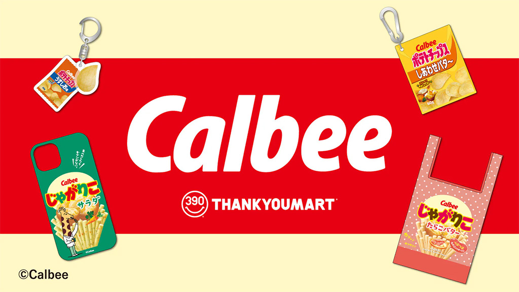 以均一價390日圓(含稅價為429日圓)為賣點的「THANK YOU MART」,商品平價親民又多元,還可以找到許多與知名IP聯名的週邊雜貨,是不少喜愛雜貨的人會去光顧的寶藏好店。而這次Calbee 與THANK YOU MART 合作推出的周邊,以Calbee薯片與JagaRico薯條作為主題,有購物袋、手機殼等多款雜貨。