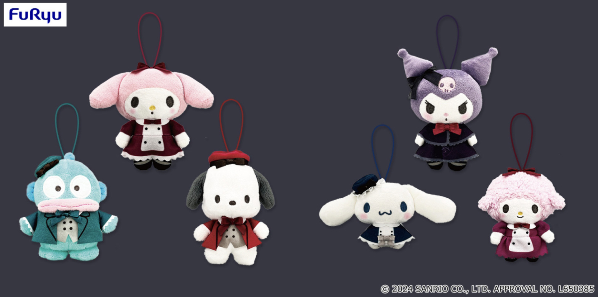 這系列是以三麗鷗角色們穿著哥德風服飾為主題的景品,可以看到人魚漢頓、美樂蒂、帕恰狗、大耳狗喜拿、酷洛米以及彼安諾等六位三麗鷗明星,以哥德風服裝的造型登場,超級稀有的穿著打扮,身為三麗鷗粉絲絕不能錯過。