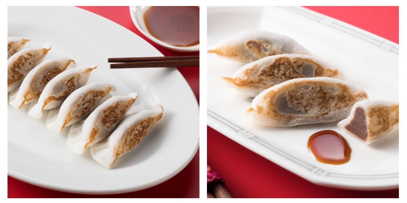 以求肥(大福外皮)包裹著生巧克力與紅豆餡,並將一顆顆大福捏得跟餃子一樣,甚至連煎餃皮那被炸得焦黃的表面也完整還原出來,讓人一時之間真的以為它就是煎餃!甚至連品嚐煎餃時要蘸的醬油,也都是以黑糖蜜來代替,連這樣的小地方也都顧到了,不得不說真的是「模仿」得很徹底。