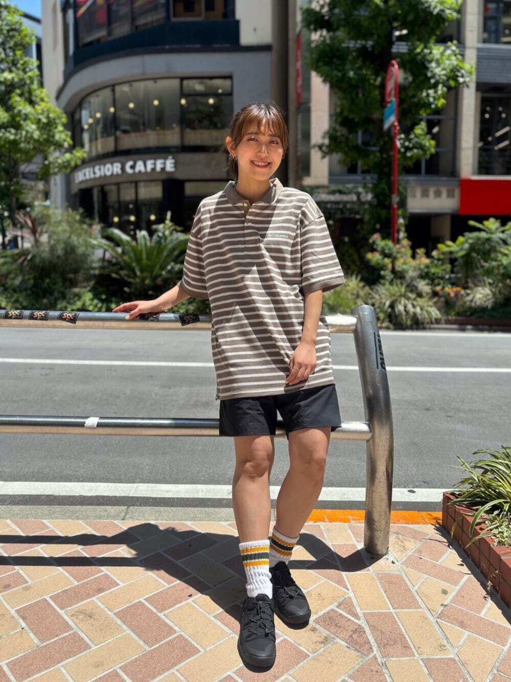 跳色組合的條紋上衣,給人一股輕復古感受,以 POLO 條紋上衣加上短褲,連結男孩感的中性印象,如果想讓復古氛圍更濃烈的話,推薦運用樂福鞋、球鞋與白色長襪混合,瞬間打造專屬個性的日系街頭 Look 。