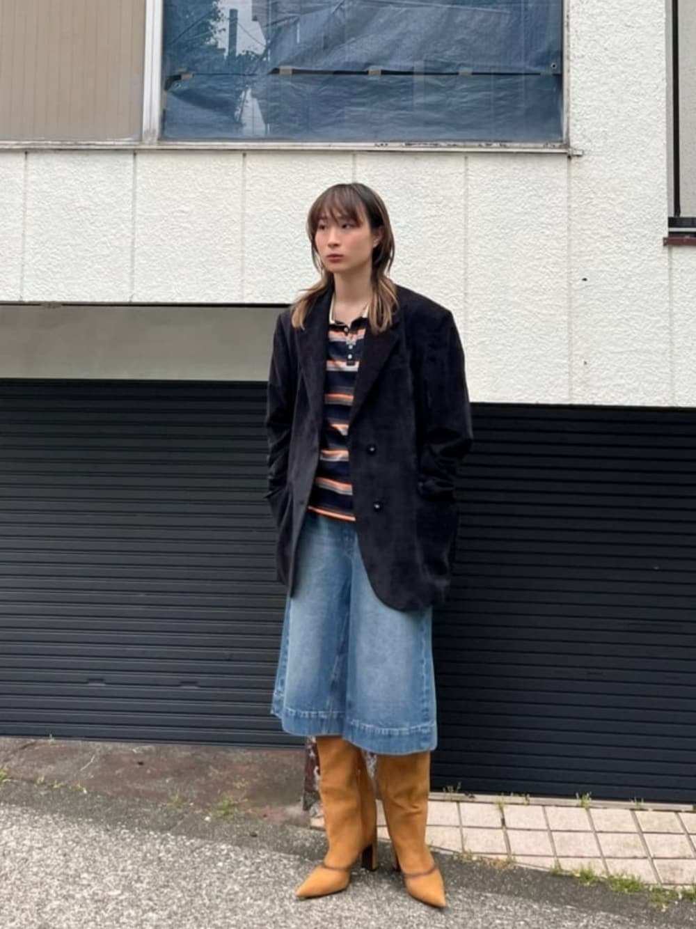 每到秋季便會回歸的西裝外套,很適合拿來與復古POLO條紋上衣混搭,例如以燈心絨西裝外套加上條紋上衣,下半身則可以搭配七分短褲、皮短褲,帶點鬆弛感的造型巧思,讓整體顯得高級又質感滿分,隨性踏上長靴或厚底鞋,展現大氣的日系時髦印象。
