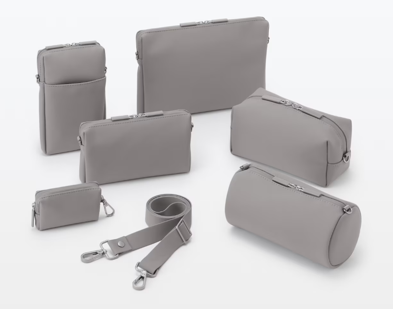 這款「可自由組合的收納包」是無印良品最新推出的實用收納產品,可根據不同用途進行組合搭配。設計時盡可能減少縫線的外露,採用了精巧的結構與樣式製作。不僅外觀精緻美觀,還可作為隨身收納包使用,亦可加上肩帶變身為斜背包,實用性極高。總共有黑色、灰色、深綠色三種顏色,且有6種尺寸可供選擇。