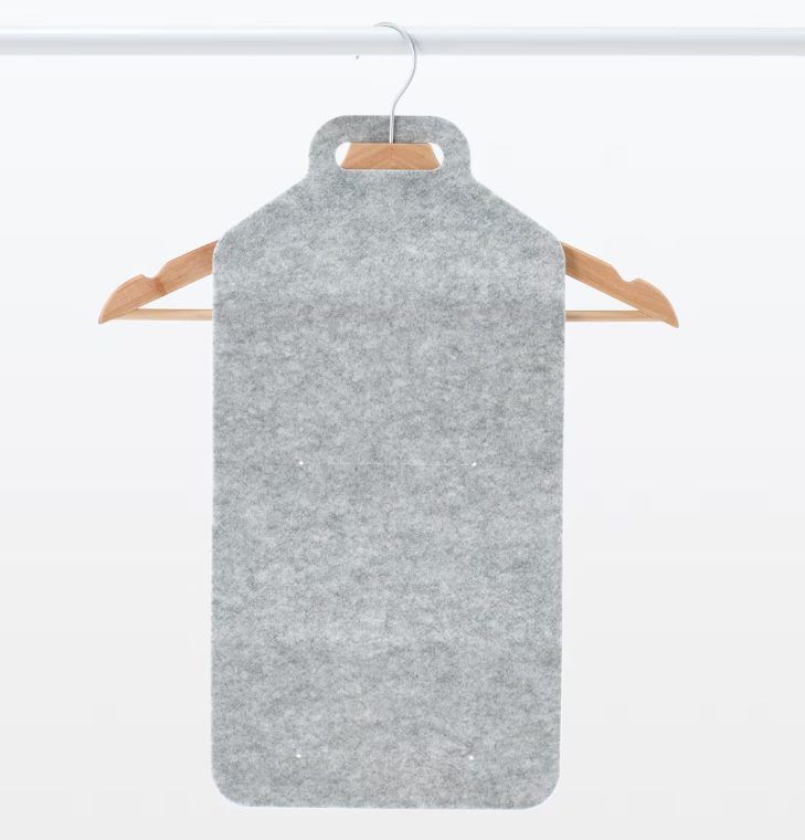特色是採用了具備優秀吸濕與消臭功能的材料,這些材料同樣應用於可重複使用的除濕劑。只需掛在衣架上,讓衣物直接接觸除濕片,即可實現衣物的除濕與消臭。經陰乾後可反覆使用。