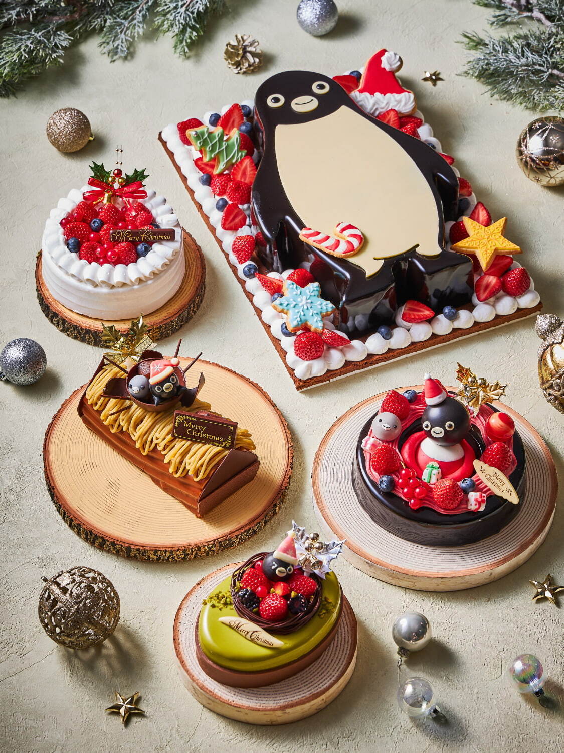 今年的聖誕蛋糕系列中,最受矚目的無疑是以Suica企鵝為主題的「Suica企鵝聖誕蛋糕」。這系列的蛋糕每年都廣受好評,蛋糕上頭的Suica企鵝那圓潤可愛的形象成為了蛋糕最大的亮點,而以草莓及戴上聖誕帽的Suica企鵝更是帶給人濃濃的聖誕氛圍。