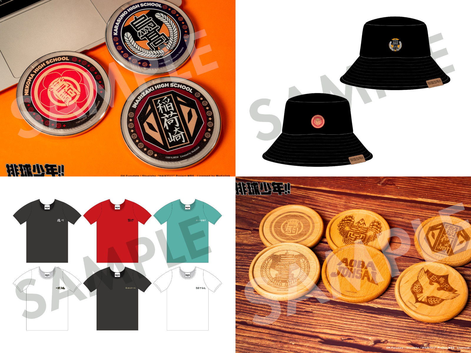 大聲為你最愛的球隊加油吧!飛吧、連繫、制霸球場、強者當如是、一球入魂及無需追憶昨日等六款「標語旗幟T」熱愛球隊標語的人千萬別錯過,穿在身上讓大家知道你的信念!烏野、音駒及稻荷崎三所高中校徽的「無線充電器」,買來充電彷彿自己就是那所學校的學生!喝水就用「木杯墊」烏野、音駒、青葉城西、梟谷學園、稻荷崎及白鳥澤學園六校校徽齊聚一堂,木紋校徽看起來別有一番風味!想要低調又排少感滿滿的配件嗎?黑色的烏野、音駒高中校徽「漁夫帽」肯定是你的最佳選擇!