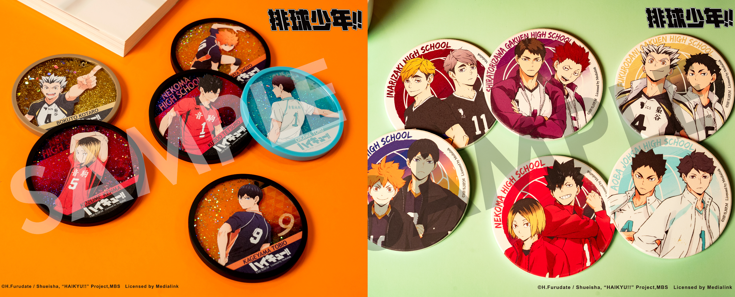 盲抽「壓克力磁鐵」多達十款動畫劇照,心臟爆擊的西谷和日向、落淚的北信介、充滿自信的菅原、專注於球場影山,抽到哪一款都超級喜歡!吸水就用「陶瓷杯墊」雙人組圖樣日向和影山、黑尾和研磨、及川和岩泉、牛島和天童、宮侑和宮治共五種選擇,一次擁有兩個角色超級物超所值啊!球隊團魂爆發烏野、音駒及稻荷崎的「大立牌」每款都有各隊的重要角色,叫人怎麼能不愛?閃亮亮的「流沙杯墊」有日向、影山、研磨、黑尾、及川及木兔,搭配各自球衣號碼共六種款式,喜歡的角色買就對了!「透風卡鑰匙圈」則有影山、月島、研磨、及川、牛島及赤葦等多達十一種角色款式,牢固的金屬扣環設計讓你可以安心掛在包包帶出門!