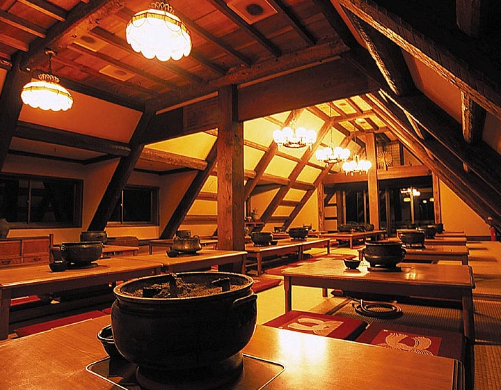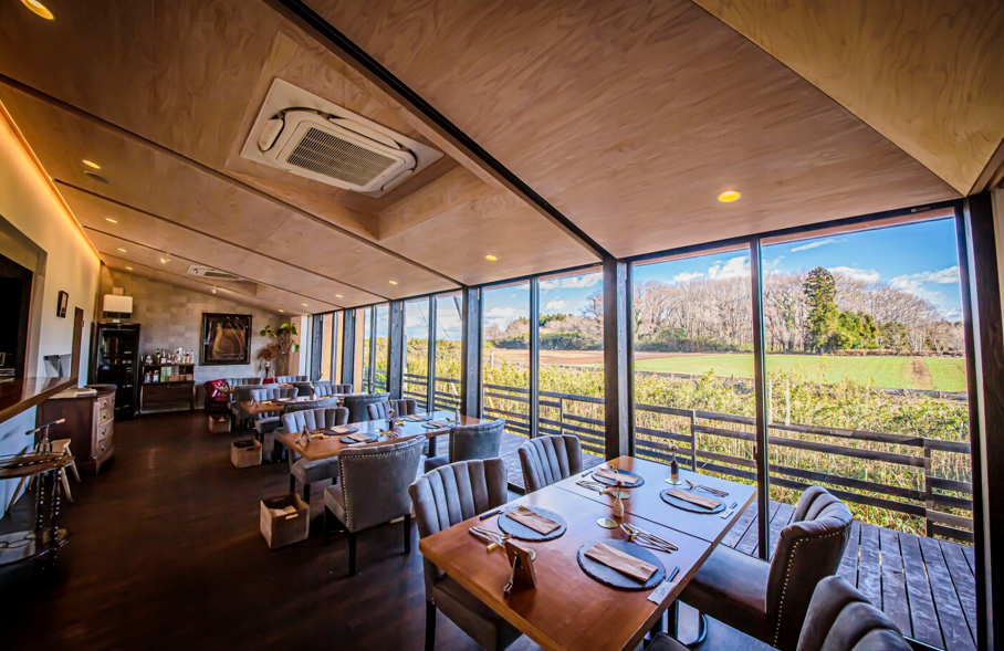 餐廳主體是由飛驒白川鄉的三座合掌造古民家移築而來,坐落在綠意盎然的地點,面對雄偉的筑波山,並重新改造為一間充滿古韻的餐廳。踏入店內,首先映入眼簾的是高挑的天花板和傳統的圍爐裏玄關大廳。在這充滿情調的非日常空間中,可以放鬆身心,享受一段靜謐而治癒的美好時光。