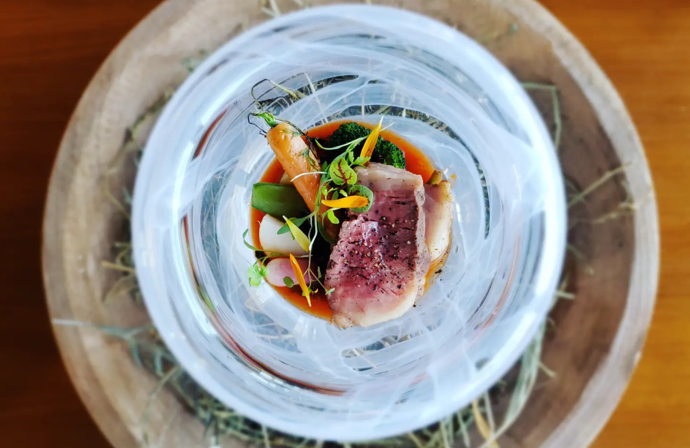 餐廳外觀簡約而高雅,店內則採用了開放式廚房設計,營造出寬敞明亮的氛圍。從窗外望去,寧靜的風景一覽無遺,讓人倍感放鬆。