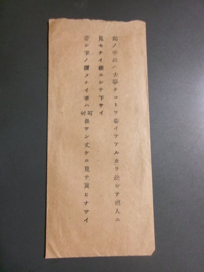 相信許多人會發現,一些日本近現代的文獻中,似乎比較正式的文章會專門使用片假名,而非平假名。就好比圖片中的海軍訃聞,信封上就完全都使用片假名來書寫。