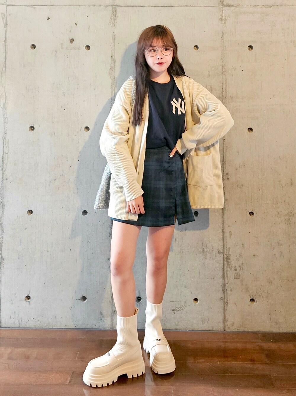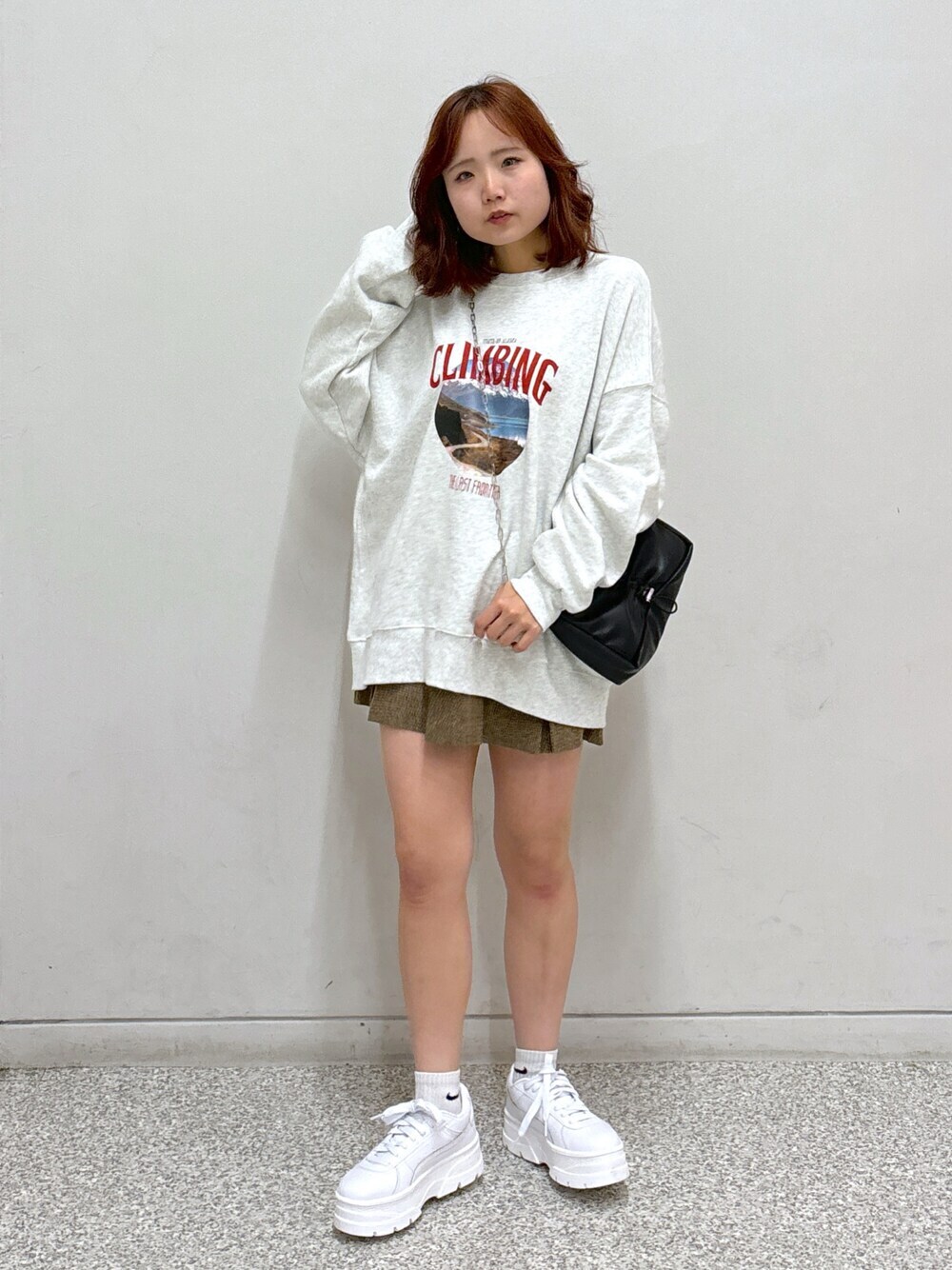 當想利用大學 TEE 打造幾分甜美度時,不妨嘗試混搭 A 字或百褶短裙,而大學 TEE 可以選用較寬鬆的版型,長度遮住屁屁能帶來顯瘦的視覺印象,另外加入球鞋或厚底靴,便可快速時髦出門。
