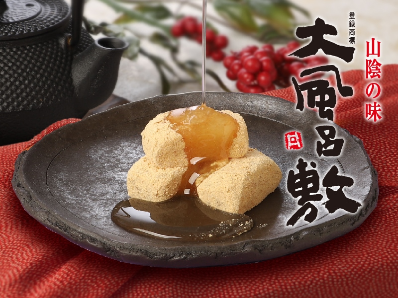 創立於1868年的山本OTAFUKU堂,其招牌甜點「風呂敷饅頭」是一款深受各年齡層喜愛的鳥取名菓。這款質樸的黑糖蒸饅頭,因外形酷似日本傳統用來搬運或收納物品的包袱布(風呂敷)折疊四角的樣子而得名。「風呂敷饅頭」以傳統製法精心製作,嚴選和三盆糖、小麥粉,以及製作細緻紅豆餡的高品質紅豆等上乘原料。每一顆饅頭都經過細緻蒸製,口感鬆軟細膩,風味樸實但令人回味無窮。