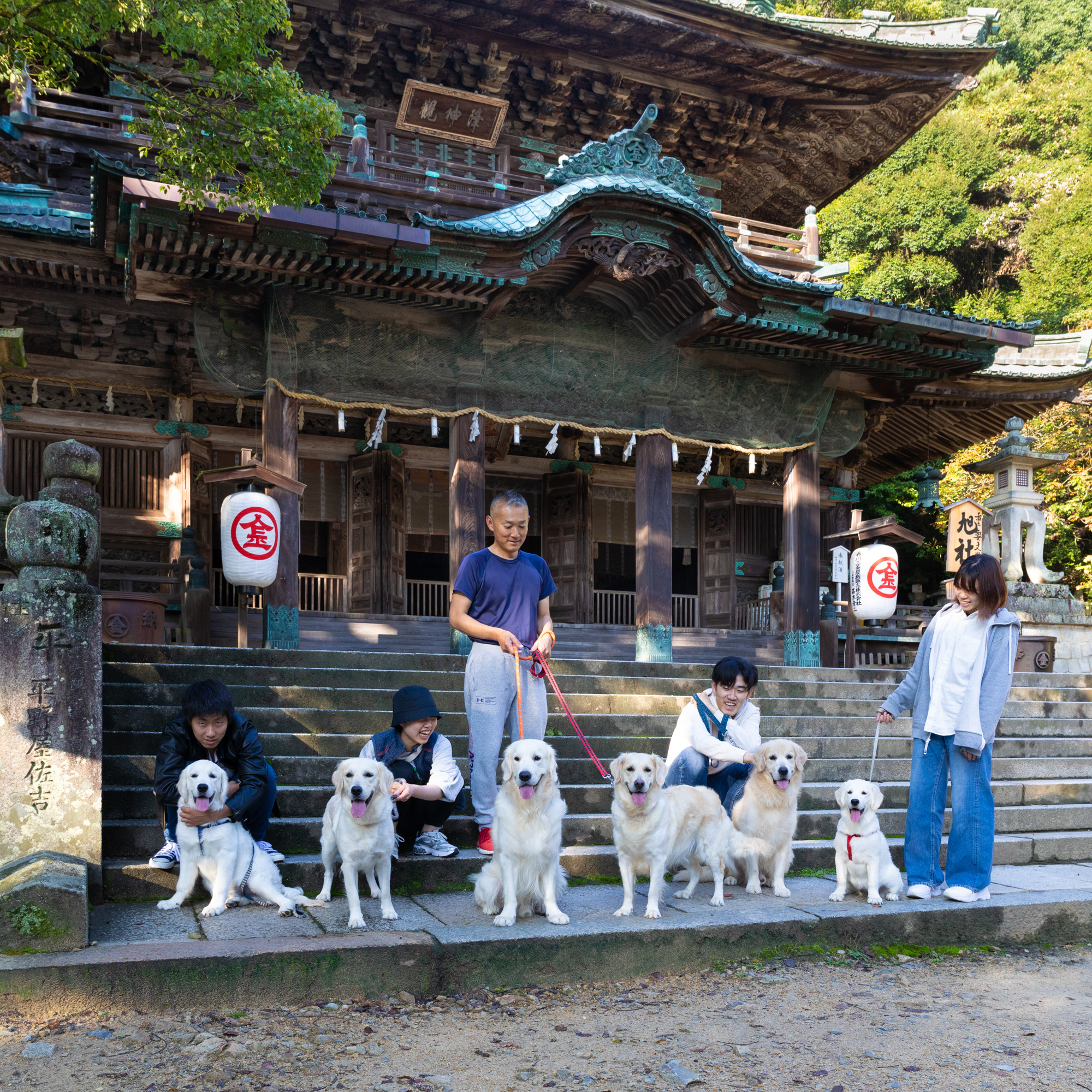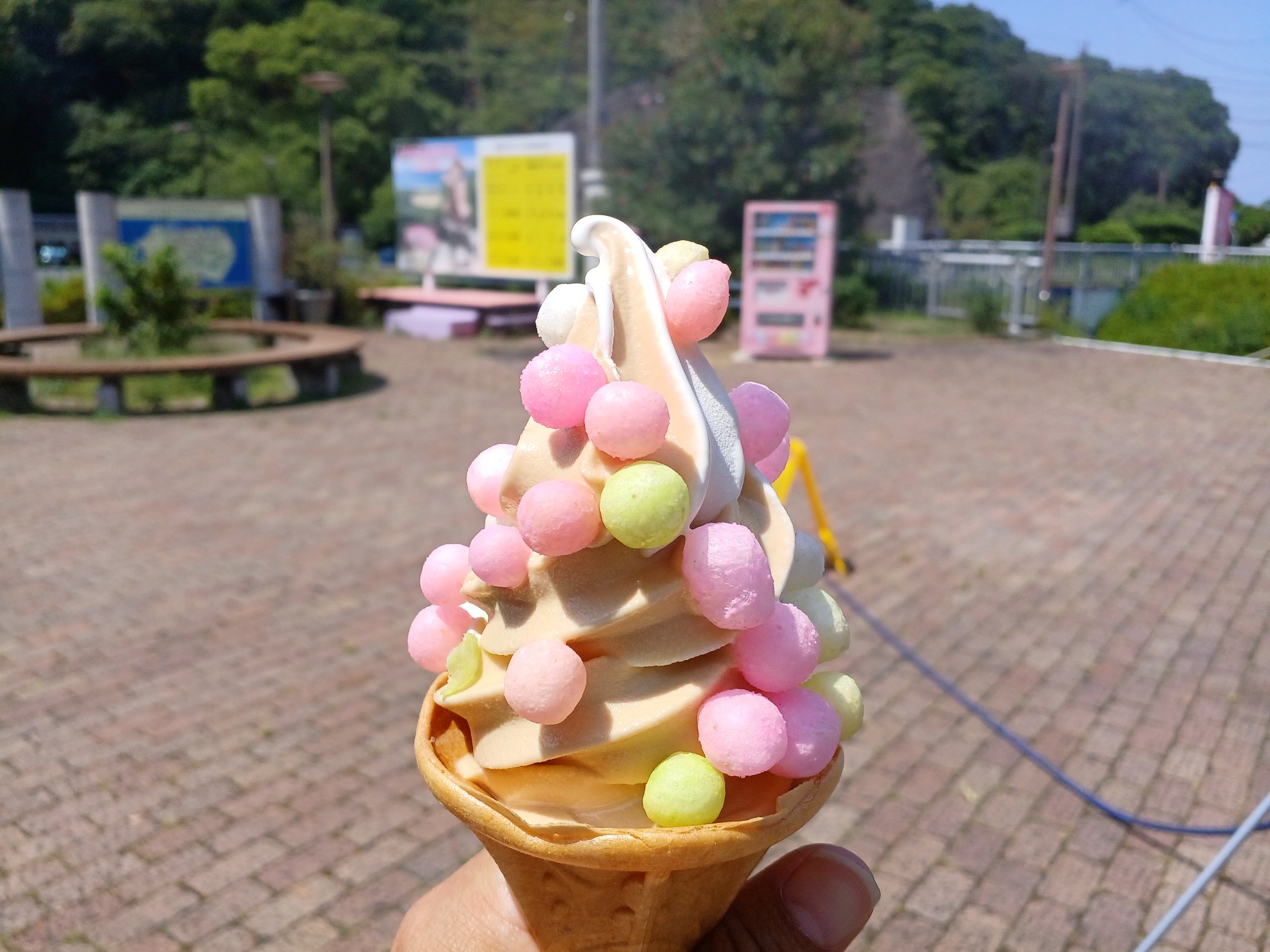 參道入口周圍有充滿地方風情的小店,販售如在社交媒體上大受歡迎的「おいり霜淇淋」等特色甜品。「おいり」是香川縣西讚地區的傳統米果,色彩繽紛,入口即化,歷來用於婚禮贈禮。此地還有許多著名景點,包括重要文化財產「書院」與多樣的傳統紀念品,如象徵帶來幸福的黃色御守及可愛的原創角色「笑顔元気くん」T恤,非常適合作為伴手禮。