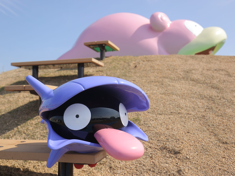 公園內最吸睛的設施是長約6公尺的巨大呆呆獸雕塑,呈現可愛的臥姿,成為遊客必拍的打卡點。此外,公園還設有以呆呆獸為靈感設計的6種遊樂設施,以及「シェルダー」(大舌貝)的特色設施,讓寶可夢迷流連忘返。同時也有販售相關的周邊,讓許多熱愛呆呆獸的寶可夢迷都忍不住想住在這裡呢!