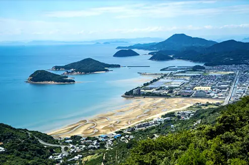 此地不僅是夏季海水浴的熱門景點,更因美麗的夕陽和平靜的潮水,成為婚紗拍攝的理想場所。建議遊客造訪前確認天氣晴朗、退潮以及夕陽西下這三大缺一不可的條件,以確保捕捉奇蹟般的絕美瞬間。這片沙灘也象徵了香川縣特有的自然魅力,是必遊的浪漫景點之一。