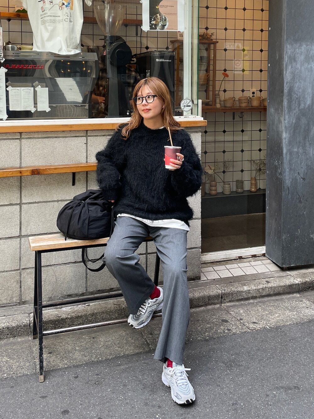 挑選毛衣的時候,可以入手帶有寬感剪裁的毛衣,不會太合身的版型,能為上半身製造慵懶鬆弛感,看起來自然而然便會有顯瘦度,下半身選擇直筒褲或寬褲混搭,還可使腿部肉肉輕鬆藏起,營造率性又休閒的日常風格。