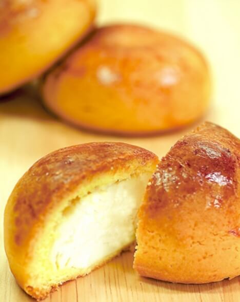 誕生於1980年代的起司饅頭(チーズ饅頭,是宮崎縣的代表性名產之一。雖然名稱中有「饅頭」二字,但其實是用酥脆的餅乾外皮包裹著奶油起司餡的甜點。不同店家的起司饅頭各具特色,有些外皮濕潤柔軟,有些則酥脆香濃,口感十分豐富!
