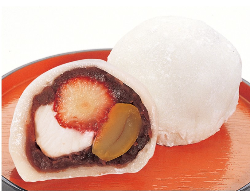 這款充滿驚喜的什麼呀大福(なんじゃこら大福),不僅有拳頭般的超大尺寸,內餡中除了甜而不膩的紅豆餡,還包入了草莓、栗子和奶油起司,一口咬下,將所有餡料的風味一次品嚐,也可以挑選草莓配起司、栗子配起司等較為簡單的組合,享受不同的味覺體驗。