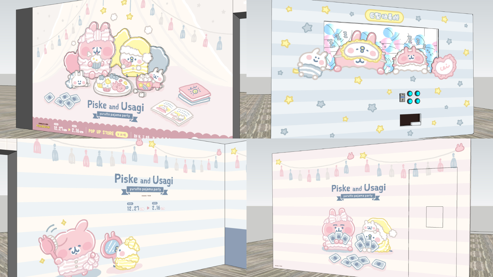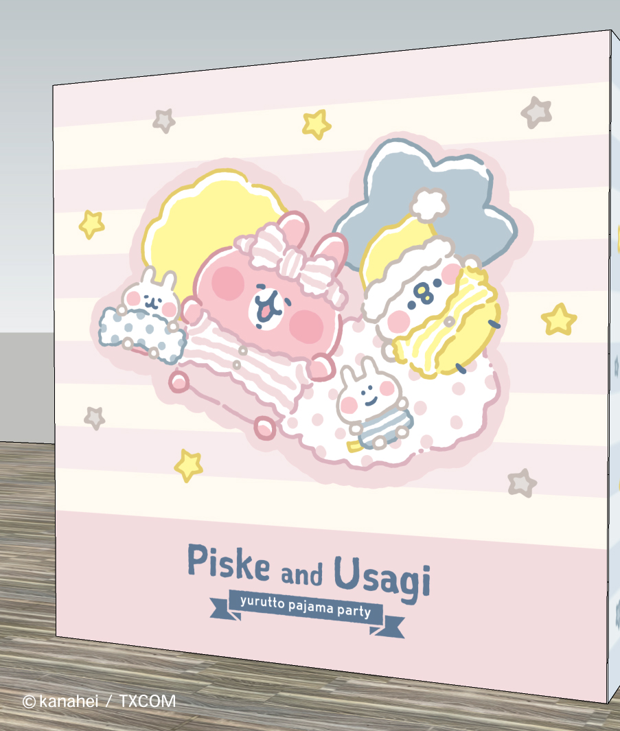 想要卡娜赫拉的小動物陪你入睡嗎?那就來「睡衣派對」與P助和粉紅兔兔一起談心、看書、吃甜點和玩桌遊吧!一到門口就有「立體P助與粉紅兔兔」抱著愛心迎接你,別忘了先來跟他們互動呦!噓~P助與粉紅兔兔帶著眼罩在「巨型扭蛋機」沈沈睡著了,不只可以試試手氣更能滿足你拍照慾望!接著來到「躺躺談心區」,蓋著小被子的粉紅兔兔和身穿整套睡衣的P助實在是太可愛了!有看到手拿牌卡的粉紅兔兔嗎?好想加入他們的「睡前桌遊時間」一起放鬆玩樂呀!逛一逛想睡了嗎?就到「偷偷睡覺區」與他們倆一起打瞌睡吧!接著看到正在「睡前儀式區」梳頭的粉紅兔兔,梳完照照鏡子舒服秒入睡!最後換好睡衣、拿著娃娃一起到「甜甜夢鄉區」甜甜入睡嚕!