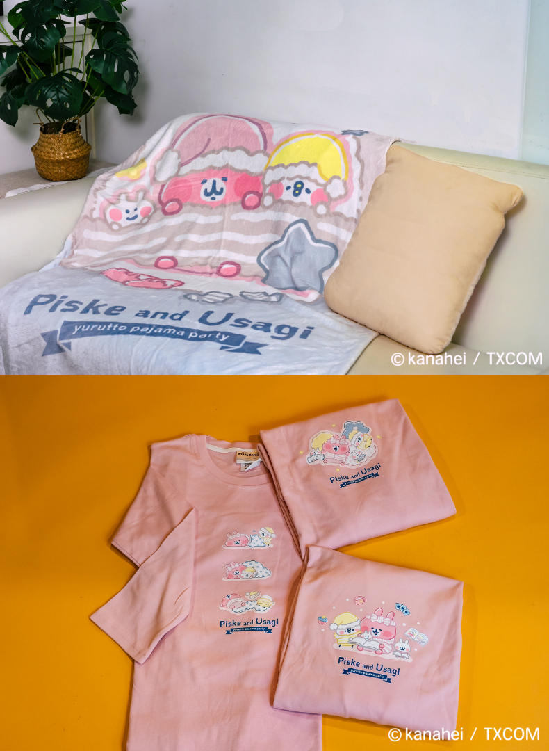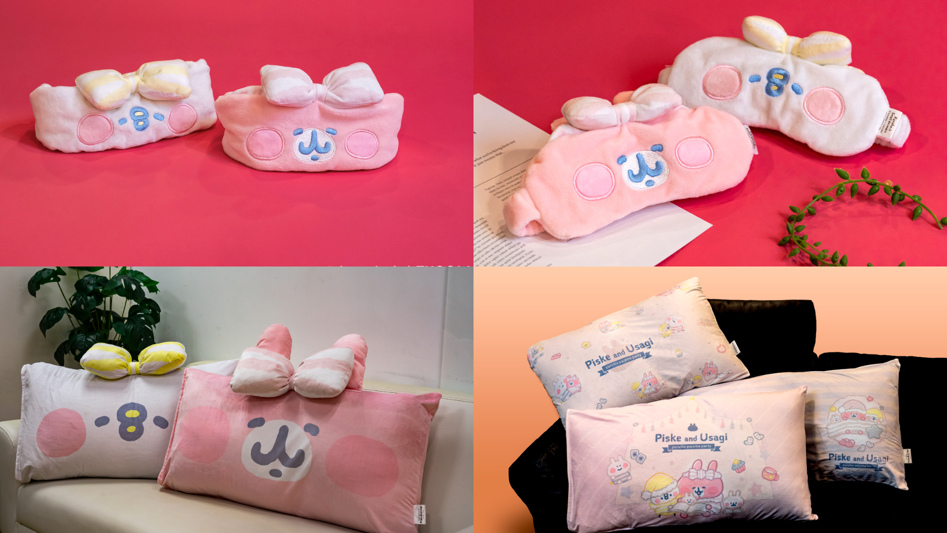 讓P助與粉紅兔兔陪你一夜好眠唷!首先換上粉色長袖看書、躺躺及趴趴等三款「睡衣」,舒服自在的材質讓你想穿一整天呢!再戴上兩款角色滿版大臉「髮帶」,瀏海、碎髮通通交給他們吧!別忘了裝上五款一起入睡、一起看書和P助與粉紅兔兔大臉等「枕頭套」,甜甜美夢不能少了他們!有光就睡不著嗎?戴上把光線通通阻隔掉的P助與粉紅兔兔造型「眼罩」,上面凸出的蝴蝶結和耳朵超級卡哇伊!氣溫逐漸下降!就讓躺躺談心、蓋被被入睡兩款材質鬆軟「毛毯」為你對抗寒流吧。粉絲必收!兩款P助與粉紅兔兔穿著粉、黃色條紋睡衣「抱枕」,上頭還有立體蝴蝶結和球球呢,真是太可愛了!