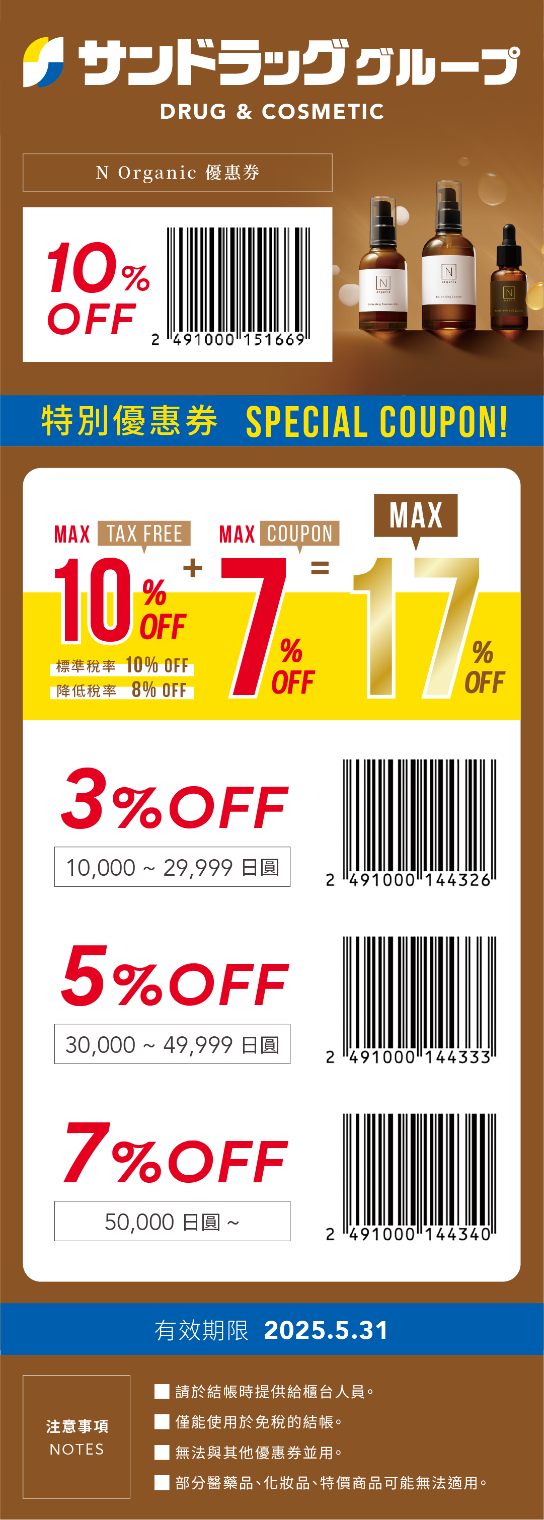 旗下有四個護膚系列:「N Organic Basic」是以預防美容為前提,在強化防禦的同時提升肌底能量,打造出滋潤健康的肌膚、「N Organic Vie」幫助缺補水與提高肌膚的緊緻度、「N Organic Bright」幫您實現無瑕透亮美白肌、「N organic Plenum」是為成年女性帶來自信的頂級抗老系列。