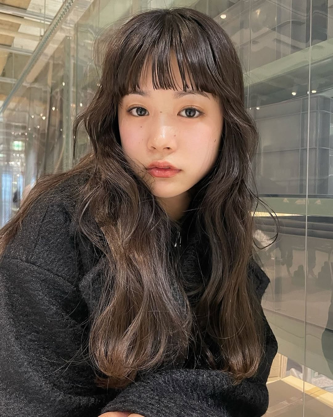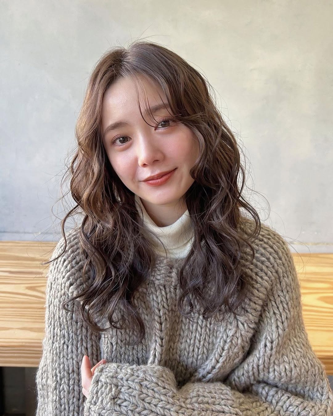 以中捲波浪線條的捲度,類似泡泡捲的髮型,使日系氛圍瞬間翻倍,更為單調的冬季增加幾分活力焦點,比起大捲的浪漫長髮,中捲其實可以提升出甜美可愛氣息,混搭旁分、妹妹頭瀏海都很合適。