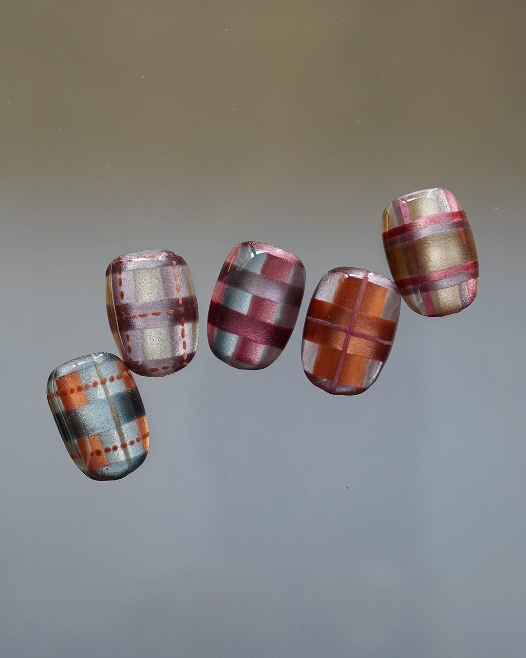 2025新年指彩範本特輯!日妞都在推這款指彩LOOK 02.輕透格紋