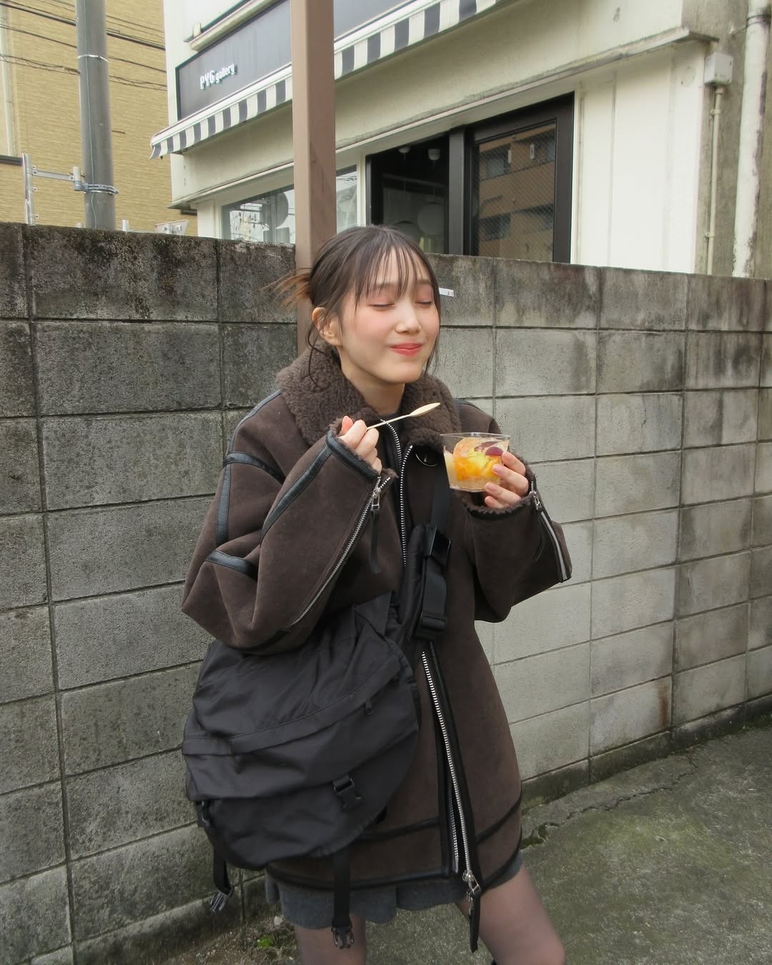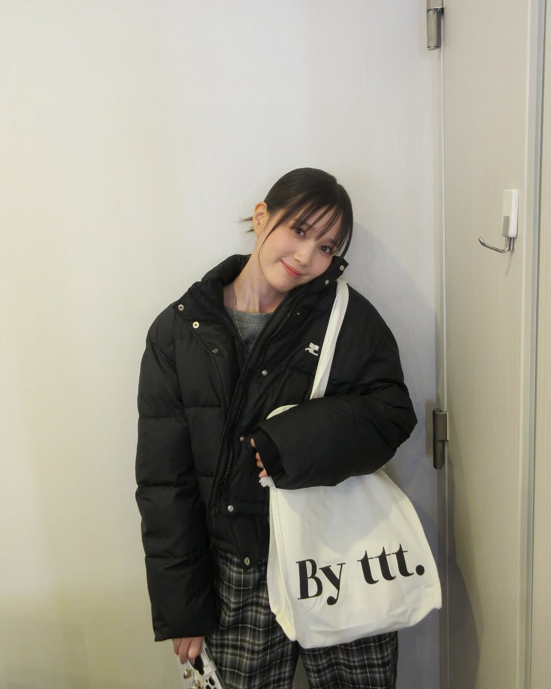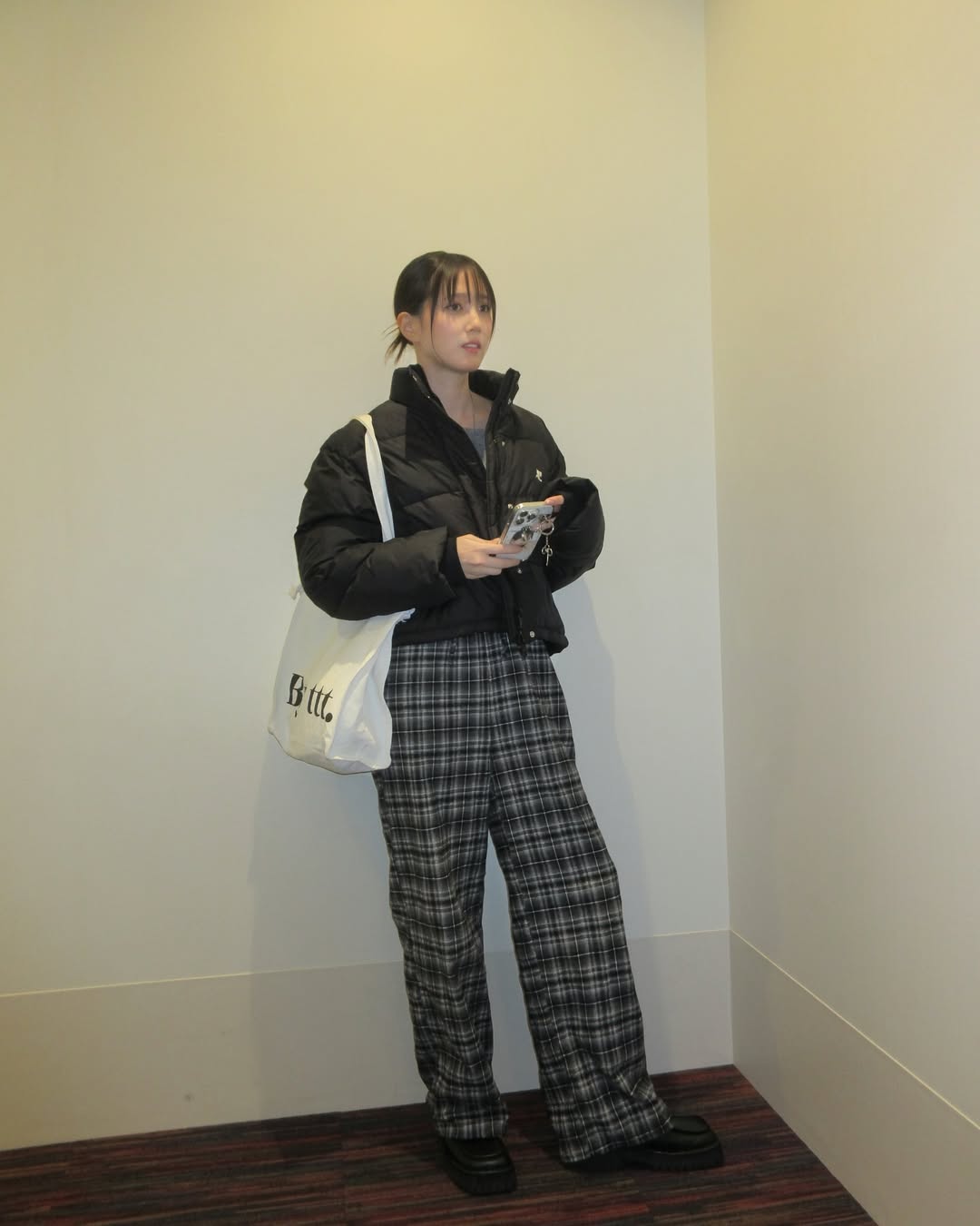 除了以「長」加「短」的造型組合,本田翼也會利用「上短下長」穿搭方式調整比例,像是天冷之際必備的羽絨外套,此時可以選搭短版剪裁的款式,再結合高腰寬褲提高腰線,充滿小心機的衣著巧思相當好看