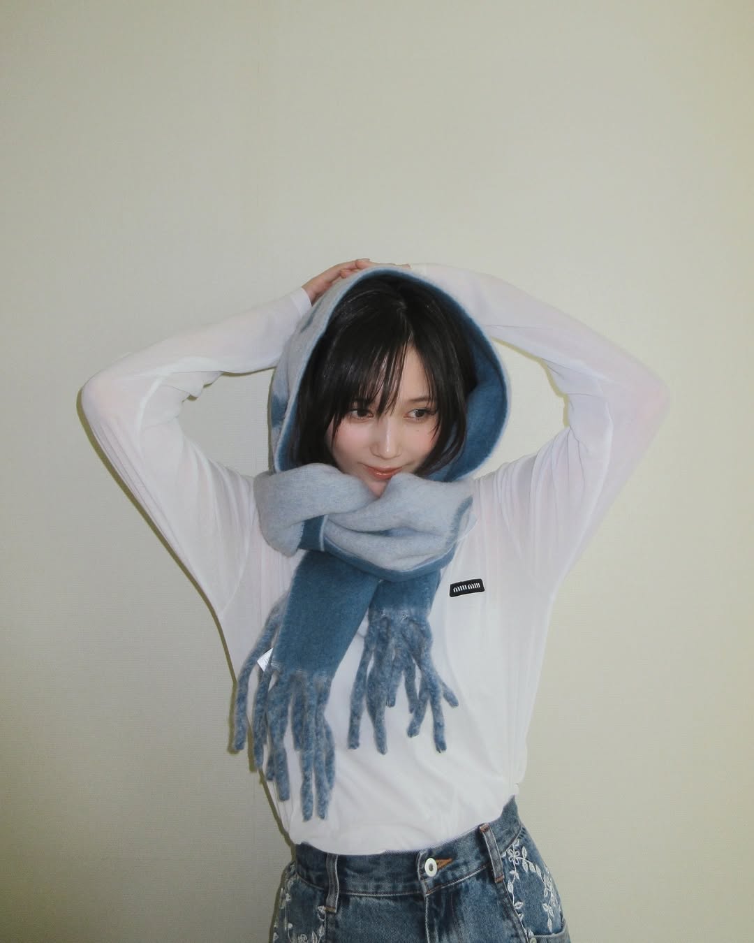 另外想讓衣著增添注目細節層次時,不妨嘗試跟著本田翼將圍巾圍成連帽造型,帶點可愛又軟萌 LOOK ,不僅快速打造保暖度,也讓整體注入一股輕甜女神氛圍。