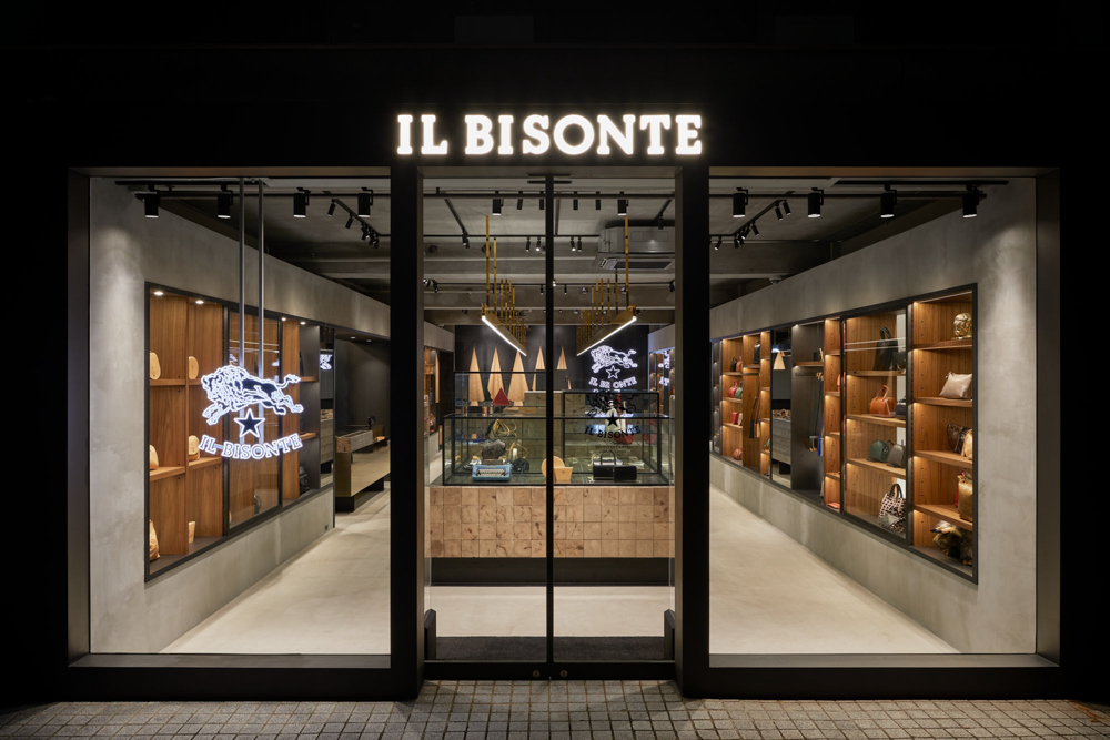 身為全國總店鋪的「IL BISONTE表參道店」,店鋪的陳列與設計相當講究。店內結合舊木材、黑皮鐵與水泥等材質,營造自然質感與現代風格交融的空間。店內設有專為小型皮具設計的特殊展示架,讓顧客可以更加輕鬆的挑選商品,是充分展現品牌特徵與理念的代表店。