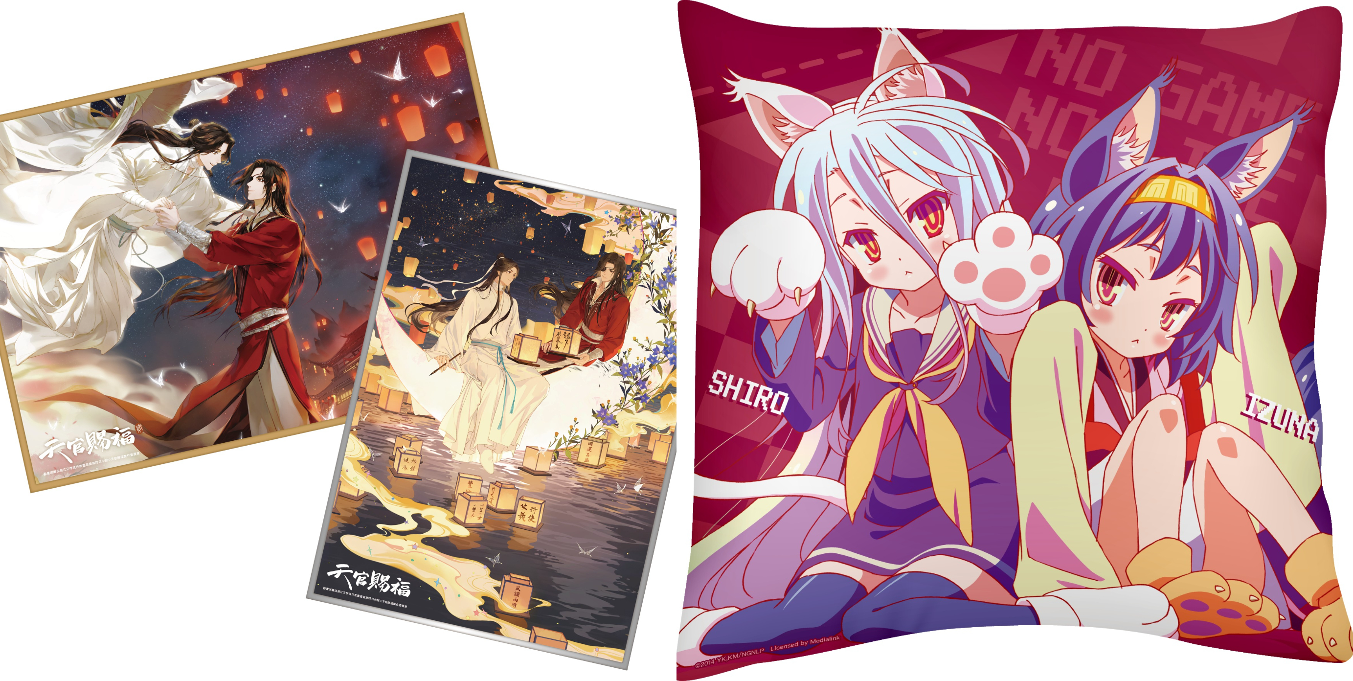 《【我推的孩子】》福袋──顏值擔當露比、C位擔當有馬及流量擔當MEM,全都想打包帶走的「B小町30公分壓克力立牌」(隨機乙款),用愛來養活《我推》;《天官賜福》福袋──唯美景象道盡謝憐與花城情意的「壓克力色紙」(隨機乙款),濃情厚意裝滿袋;《遊戲人生》福袋──最有溫度的「白&初瀨方形抱枕」,將美少女緊擁在懷裡從此不是問題。