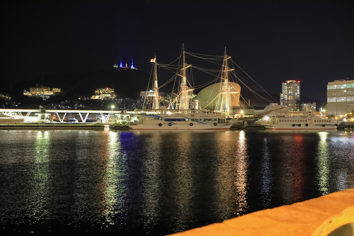 除此之外,在出島還有一個被稱作出島碼頭的灣岸廣場,此處以美麗的夜景著稱,一到了晚上,周遭便會被華麗的燈光裝飾包圍,想必能讓大家都盡興而歸。