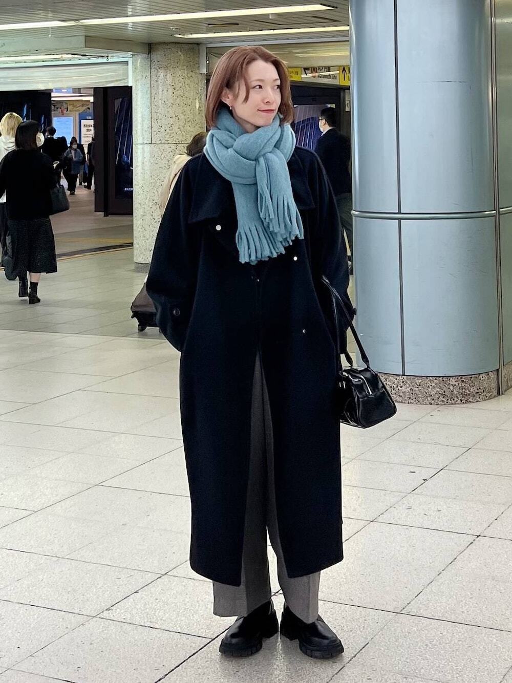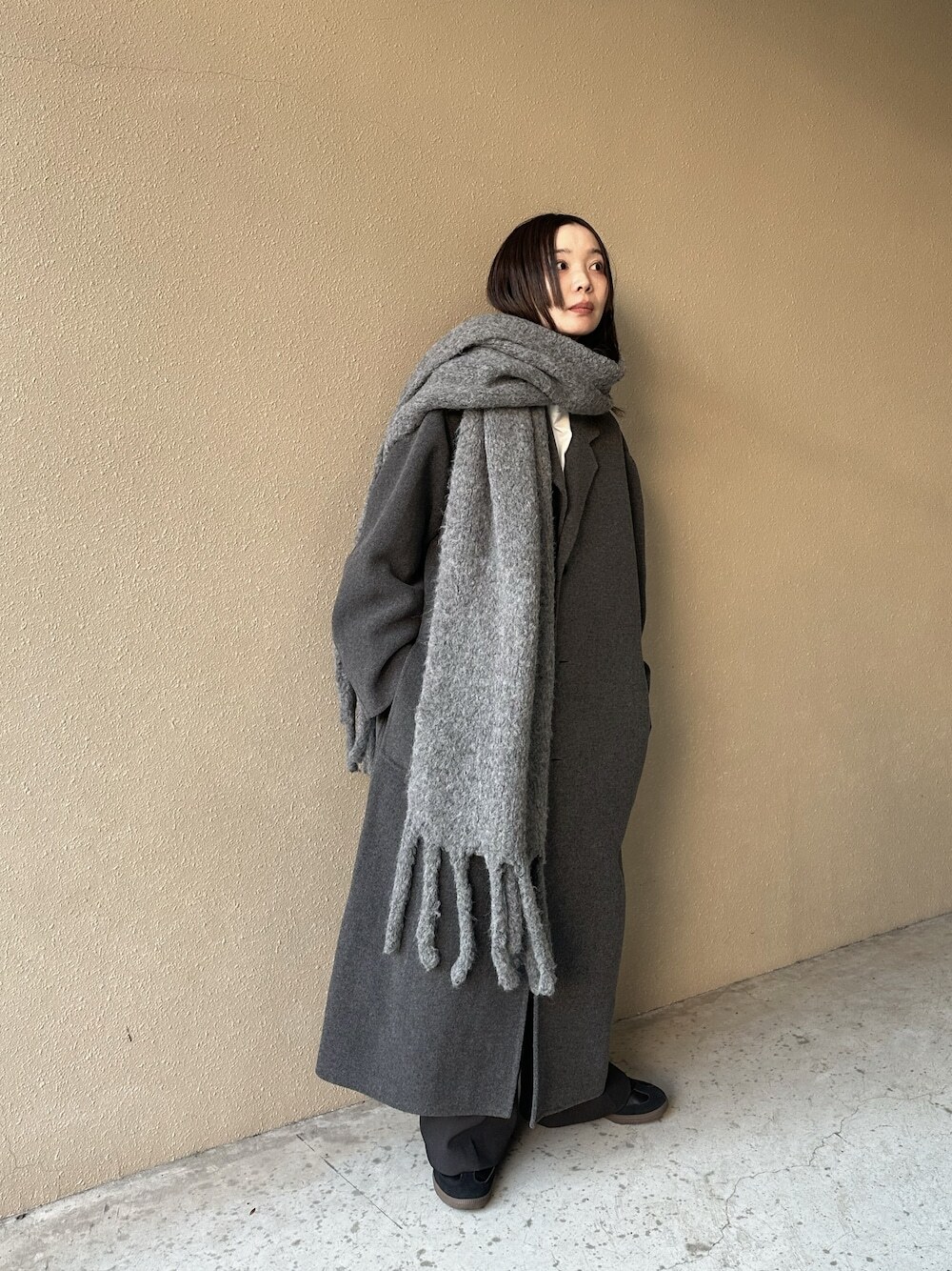 衣櫃裡一定都有的寬版圍巾,非常適合拿來製造造型重點,以沈穩灰圍巾加大衣,連結高級大氣的日系層次,並運用深淺灰色疊搭,快速打造令人為之一亮的衣著魅力。