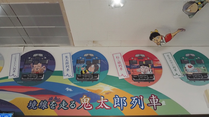 抵達境港車站時,除了會有鬼太郎站的招牌歡迎你之外,驗票口也有寫著「歡迎來到妖怪之國」,在候車室內有也有各式各樣的鬼太郎角色和介紹!