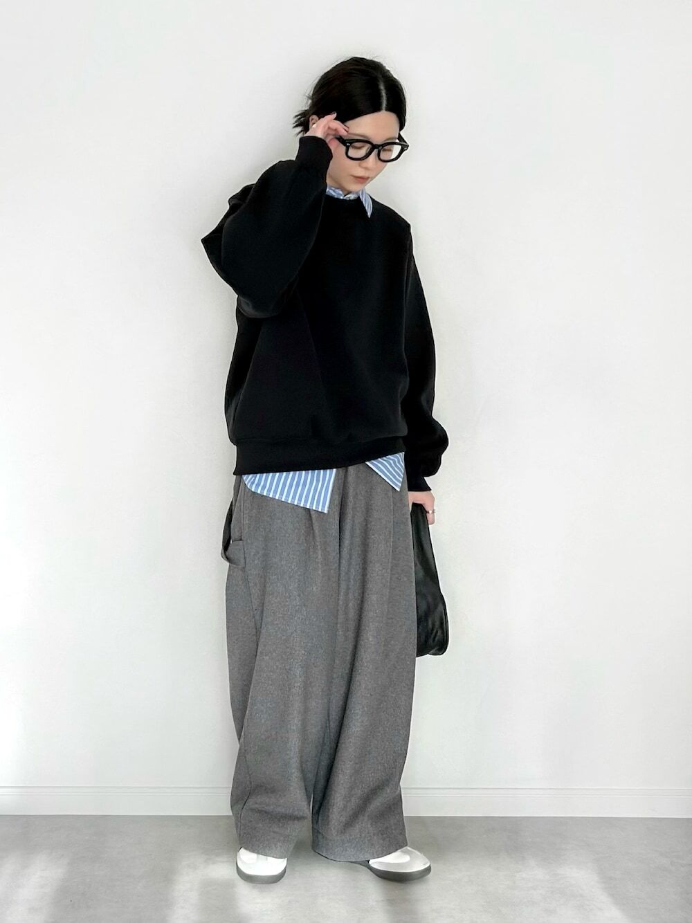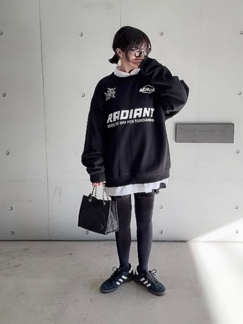 把寬鬆剪裁的大學TEE 當作洋裝穿,能快速堆疊出個性兼具的時髦魅力,透過長版襯衫混搭,使造型更完整且有亮點,結合褲襪或棉褲為搭配,傳達好感度滿分的日系質感。